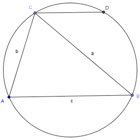 Si llamamos $a$, $b$ y $c$ a las longitudes de los lados $ BC$, $CA$ y $AB$ del triángulo $ ABC$. Entonces, la siguiente relación entre los lados del triángulo y el coseno del ángulo en el vértice $A$ es llamada Ley de los cosenos.