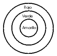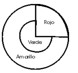 A continuación se muestran cuatro diseños de “tiro al blanco” de tres colores. ¿En cuál de ellos el juego es más justo porque la probabilidad de acertar es la misma para cualquiera de los tres colores?