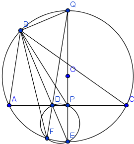 Considera un triangulo $ ABC $ Con $ BD $ su bisectriz interna ( $D$ sobre $AC$) Sea $E$ el punto donde se intersectan $BD$ y el circuncirculo del triangulo $ ABC $. El circulo de diametro $DE$ corta al circuncirculo del triangulo $ ABC $ en los puntos $D,F$ demuestra que $BF$ es la simediana del triangulo $ ABC $